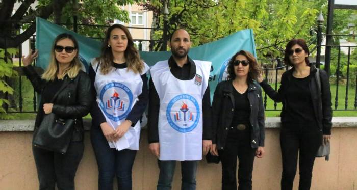 Eğitim ve Bilim Gücü Dayanışması Sendikası üyeleri, İstanbul'da okulda uğradığı silahlı saldırı sonucu hayatını kaybedenİbrahim Oktugan için İl Milli Eğitim Müdürlüğü önünde bir araya geldi. Eğitim çalışanlarının karşılaştığı şiddet olaylarına dikkat çekmek için bir araya gelen üyeler, 9-10 Mayıs’ta iş bırakacaklarını dile getirdi. Artan şiddet vakalarına karşı sessiz kalmayacaklarını belirten Sendika Başkanı Selinay Aktaş, “Son dönemde eğitim kurumlarında yaşanan şiddet olaylarının artması, sadece bireysel değil, toplumsal bir sorun haline gelmiştir. Eğitim çalışanlarına yönelik yapılan fiziksel ve sözlü saldırılar, sadece çalışanların sağlığını tehdit etmekle kalmıyor, aynı zamanda öğrenci ve velilerin de güvenliğini tehlikeye atıyor.Eğitim çalışanlarının can güvenliği artık birinci öncelik olmalıdır. Gerekli önlemlerin alınması ve şiddetin her türlüsüne karşı sıfır tolerans politikasının benimsenmesi gerekmektedir. Eğitim çalışanlarına yönelik şiddetin ciddiyetinin farkında olduğumuzu ve bu sorunun çözümü için adım atılması gerektiğini vurguluyoruz.Eğitim çalışanlarının insanca yaşayabilecekleri bir çalışma ortamı sağlanmalı ve hak ettikleri değeri görmelidirler.'Eğitim Çalışanlarına Şiddet Yasası'nın bir an önce çıkarılmasınıtalep ediyoruz. Okullarımıza yeterli sayıda güvenlik görevlisi temin edilmesini istiyoruz” ifadelerini kullandı.