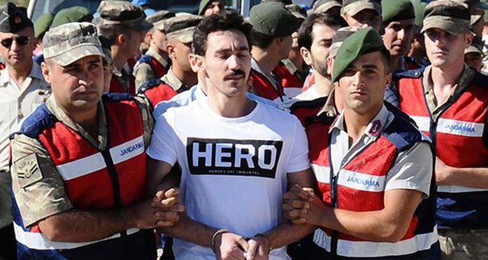 15 Temmuz'da Cumhurbaşkanı Erdoğan'ın Marmaris'te kaldığı otele baskın yapan sanık Gökhan Güçlü'nün "hero" (kahraman) tişörtüyle mahkemeye gelmesiyle ilgili cezaevi ikinci müdürü, bir idari personel ile üç infaz korumla memuru Adalet Bakanlığı'nın kararıyla açığa alınmıştı. 5 cezaevi görevlisi hakkında dava açıldı.