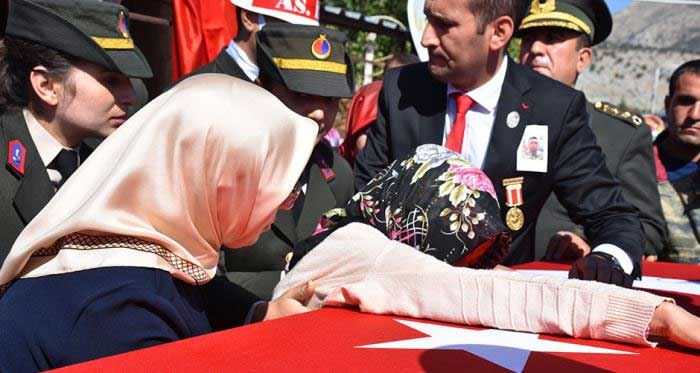 Şehidin babası, annesi ve kardeşleri de tabuta sarılarak gözyaşı döktü. Sarıldığı tabutu bırakmak istemeyen şehidin kız kardeşi Rasime Çelik, "Ne olur onu götürmeyin" diyerek ağladı.