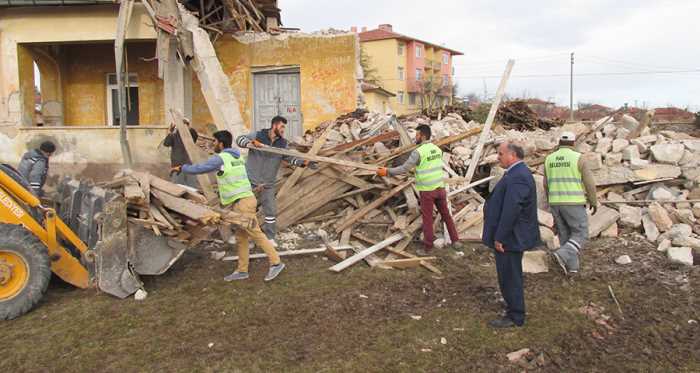 Eskişehir Han ilçesi Belediye Başkanı Erdal Şanlı, okullar bölgesinde yapılan ‘Okullar Temiz Olsun’ protokolü kapsamında başlayan yıkım işlemini inceledi.