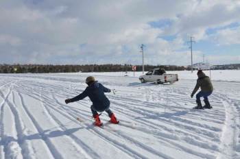 Araçların Arkasına Halat Bağlayan Kayak Merakları 3 Bin Yıllık Vadide Kayak Yapmanın Keyfini Çıkardı