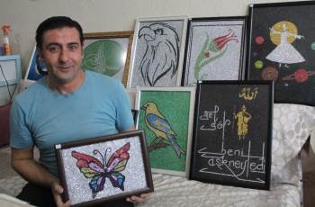 Kütahya'daki Bir Fabrikada İşçi Olarak Çalışan Ömer Yıldırım, Takılarda Kullanılan Şerit Boncuklarıyla Tablolar Yapıyor.