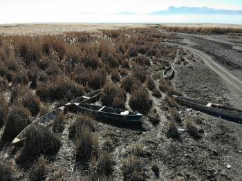 Önceki yıllarda balık tutanlar, avcılık yapanlar ve en önemlisi kamış toplayıcılarının kayıklarla ilerlediği yerlerde suların çekilmesi ile şimdi motorlu taşıtlarla açılan yollardan göl suyunu ulaşılıyor. Gölde kullanılan ve şimdilerde karada oldukları gözlenen kayıklar ise ortaya çıkardığı ve görenleri ürküten manzarası ile adeta bir kayık mezarlığını anımsatıyor. Bölgede önemli bir geçim kaynağı olan ve bazı Avrupa ülkelerine ihracatı dahi yapılan kamış üretiminin de suların çekilmesi ile azaldığı kaydedildi. İhlas Haber Ajansı (İHA) kameramanları göldeki su çekilmesini havadan drone ile görüntüledi. Görüntülerdeki içler acısı manzara ise göl için tehlike çanlarının şimdiden çaldığını göstermeye yetti.