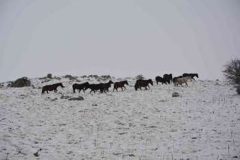 (Özel) Kar Altında Yem Arayan Yılkı Atlarını İha Görüntüledi