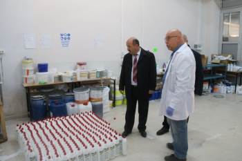 İl Millî Eğitim Müdürü Hasan Başyiğit ve Müdür Yardımcısı Hakan Gölpınar Necmettin Erbakan MTAL’yi ziyaret ederek okuldaki dezenfektan sıvı üretimini yerinde inceledi. Müdür Başyiğit, okuldaki üretim konusunda Okul Müdürü Mustafa Özünlü ve diğer yetkililerden bilgi aldı.