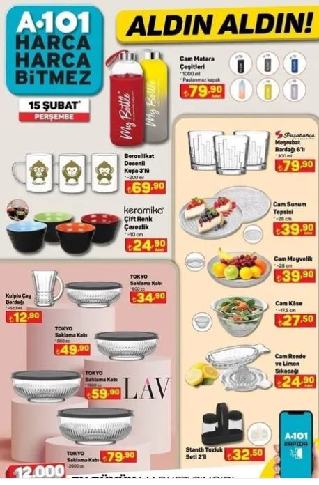 En yeni A101 kataloğu harika fırsatlarla dolu. Bu Perşeme yani15 Şubat'ta, A101'in en son aldın aldın kataloğu ile gıdadan, elektroniğe, ev ürünlerinden, tekstile pek çok ürüne indirimli fiyatlarla sahip olabilirsiniz. İşte son A101 kataloğu detayları....