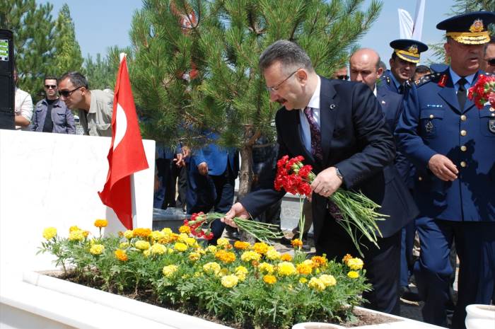 Törende, protokol üyeleri, şehidin mezarına kırmızı gül bıraktı.