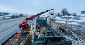 Afyonkarahisar’In Bolvadin İlçesinde İki Tırın Çarpıştığı Kazada 1 Kişi Hafif Şekilde Yaralanırken, Kazada Çarpışan Tırlardan Birinin Kupası Metrelerce Öteye Fırladı.
