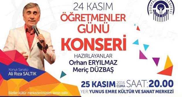 Ali Rıza Saltık’ın konuk sanatçı olarak katılacağı 24 Kasım Öğretmenler Günü Konseri’ni dinlemek isteyen vatandaşların, biletlerini YKSM’den temin edebilecekleri açıklandı.