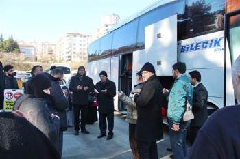Bilecik eski Şehirler Arası Otobüs Terminali’nde heyecanla bekleyen umrecilere, Bilecik İl Müftü Vekili Mustafa Topal tarafından umre hakkında bilgi verildi. Ardından aileleri ile vedalaşan ve 25 günlük umre programına katılacak 25 kişi dualarla kutsal topraklara uğurlandı.