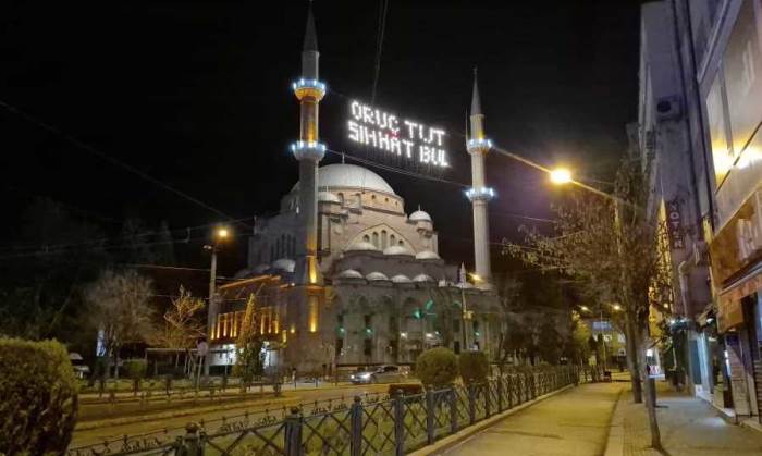 Ramazan ayı öncesinde Eskişehir’de tarihi camilerde hazırlıklar tamamlanırken, kentin simge yapılarından Reşadiye Camii’nin minareleri de mahya ile süslendi. İki minare arasına bu yıl “Oruç tut sıhhat bul” yazısı asıldı.