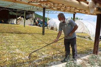 Çevre il ve ilçelerden satın aldığı organik yaş elma, armut, vişne, kiraz gibi meyveleri parçalatmak ve çekirdeklerini çıkarmak amacıyla Kızılçukur, Sefaköy, Halifeler, Alınören, Saklar, Kutlubeyler ve Kestel köylerindeki evlere dağıtım yaptığını belirten Yılmaz, “Böylece üretim sezonu süresince 7 köyde bulunan yaklaşık 300 ev hanımı meyve doğrayıp, çekirdeklerini çıkarmak suretiyle elde ettikleri gelirle aile ekonomisine katkı sağlıyor. Ama ne yazık ki elektrik olmadığı için yaş meyve kurutma işini ilkel usullerle yapıyorum” diye konuştu.