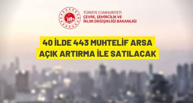 T.C. Çevre, Şehircilik ve İklim Değişikliği Bakanlığı, 40 ilde 443 muhtelif arsayı 26 ve 27 Ocak 2023 tarihlerinde düzenlenecek ihalede açık artırma ile satacak.
