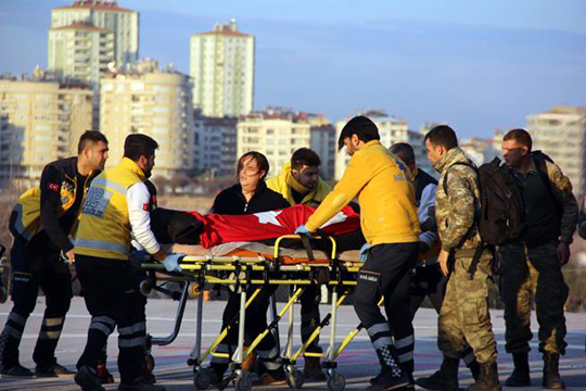 Fırat Kalkanı Harekatı kapsamında Suriye'nin El Bab kentinde bulunan Türk askerine yönelik, terör örgütü DEAŞ'ın bombalı araçla düzenlediği saldırıda şehit olan 5 askerin cenazeleri, Gaziantep'e getirildi. Saldırı bölgesinden çıkarılan askerler, helikopterle Gaziantep Çocuk Hastanesi bahçesindeki piste getirildi. Şehitlerin cenazeleri, burada bekleyen ambulanslarla Gaziantep Adli Tıp Kurumu'na götürüldü.