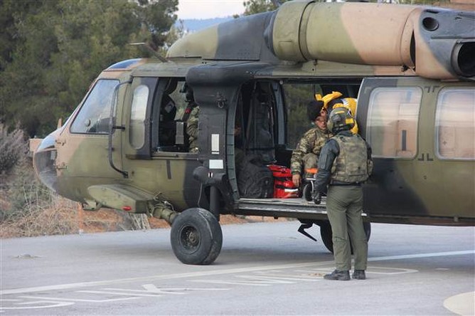 Yaralanan askerler helikopterle Gaziantep'e getirildi.