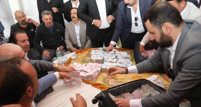 Van'da Ertoşi aşiretine mensup iş adamı Nevzat Durmaz’ın oğlu Adem Durmaz ile Sozdar Yağızer dünyaevine girerken, geline 4 kilo altın damada ise 6 milyon TL para takıldı.