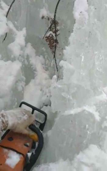 5 Metrelik Buz Kütlesini İşçiler Motorlu Testereyle Kesti