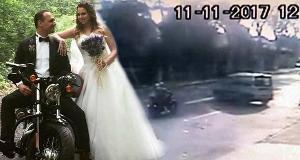 İstanbul Sarıyer'de park halinde olduğu yerden “U” dönüşü yapan hafif ticari araca, süratli seyir halinde olan motosikletli 6 aylık yeni evli çift çarparak takla attı.