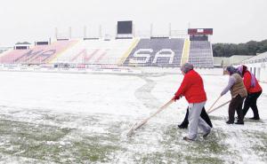 Manisaspor'un Eskişehirspor ile oynayacağı maç öncesinde Manisa'daki kar yağışı nedeniyle 19 Mayıs Stadı'nda kar temizleme çalışmaları yapıldı.