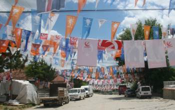Seçim için beldede aylar öncesinden çalışmaya başlayan siyasi partilerin ise beldenin neredeyse tamamını bayrak ve adaylarının fotoğrafları ile donattıkları gözlendi. Beldede kendilerine seçim büroları da açan siyasi partilerin, seçim otobüsleri de ile de sürekli beldede müzik eşliğinde propaganda yaptıkları gözlendi.