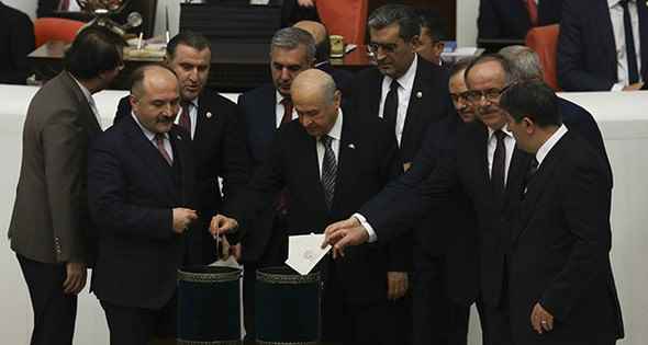 Başbakan Binali Yıldırım, CHP Genel Başkanı Kemal Kılıçdaroğlu ve MHP Genel Başkanı Devlet Bahçeli oylarını kullanırken partilerinin milletvekilleriyle fotoğraf çektirdi.