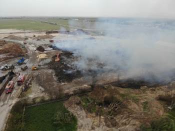 80 Bin Metrekarelik Alandaki Hammaddelerin Yandığı Alan Havadan Görüntülendi
