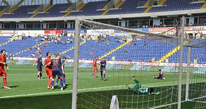 Kayserispor’un, Bursaspor’u yendiği kritik haftada Eskişehirspor’un puan kaybetmesi, bir anlamda kümeden düşmesi demekti. Maça tutuk başlayan Siyah-Kırmızılı ekip, rakip kaleye gitmekte çok zorlandı. 9’uncu dakikada Mersin’de Murat Ceylan'ın sağdan ortasında ceza sahası içinde Eren Tozlu yakın mesafeden topa vuramayınca top Ali Şaşal'da kaldı.