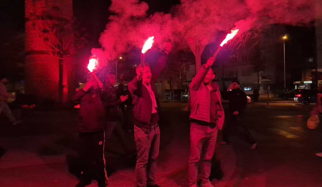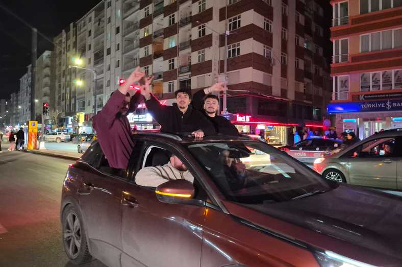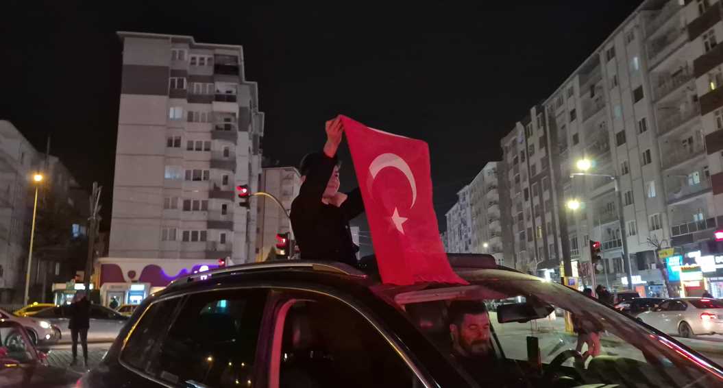 Kırmızı-beyaz bayraklarla adeta şölen alanına dönen bulvarda kutlamalar, marşların hep bir ağızdan söylenmesi ve uzun araç konvoylarıyla gece geç saatlere kadar devam etti.