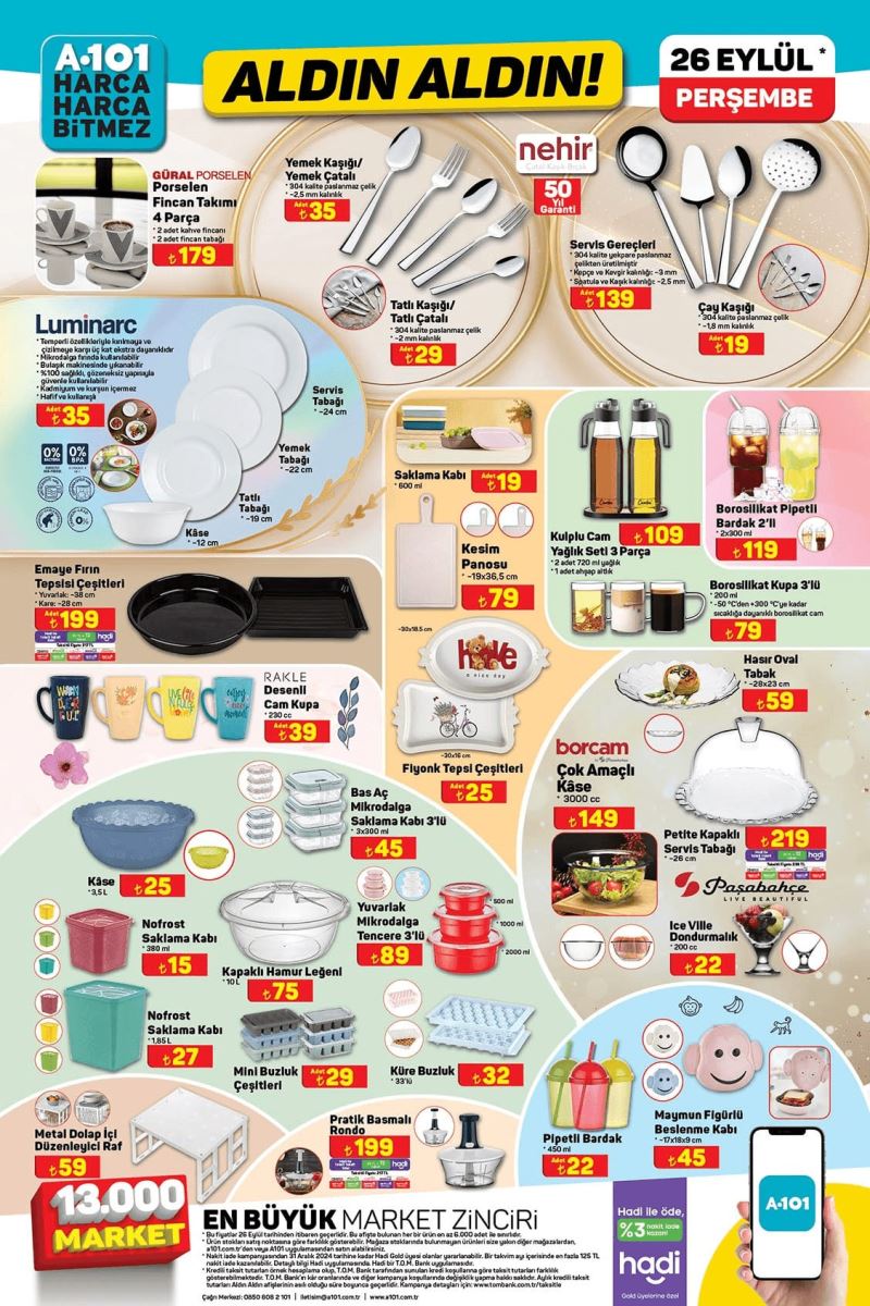 A101, kaliteli ürünleri en uygun fiyatlarla müşterilerine sunmayı ilke edinmiş bir market zinciri. Bu haftaki kampanyası da, tüketicilerin beklentilerini karşılayacak nitelikte. Hem ucuz hem de yüksek kaliteli ürünlerin yer aldığı katalog, Eylül ayının son haftasında tüm A101 mağazalarında satışa sunulacak.