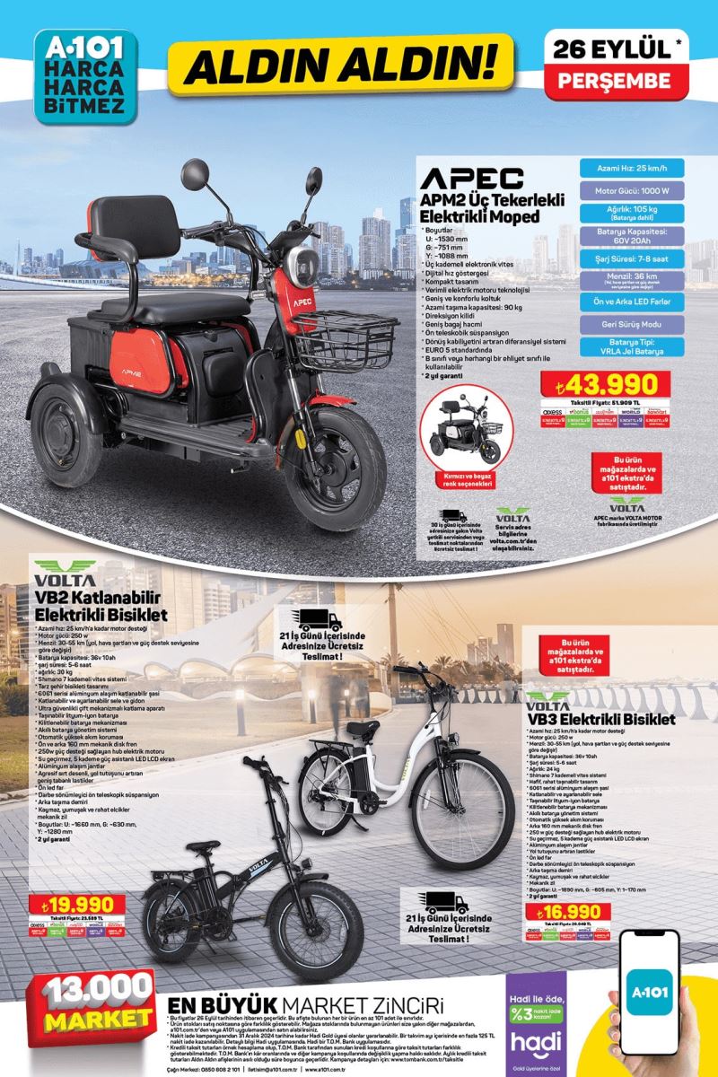 Bu katalogda, müşterilerin ilgisini çekecek birçok ilgi çekici ürün yer alıyor. Dikey süpürge, masaj aleti, filtre kahve makinesi, elektrikli moped ve tiny house gibi ilgi çekici ürünler, katalogda öne çıkan ürünler arasında yer alıyor. A101, Eylül ayına özel olarak sunduğu bu fırsatlarla, müşterilerinin beklentilerini karşılamayı hedefliyor. Market zincirinin 26 Eylül 2024 tarihli aktüel ürünler kataloğu incelendiğinde, tüketicileri bekleyen birçok cazip ürün göze çarpıyor. Kahvaltılık ürünler, sucuk ve salam çeşitleri, dondurulmuş gıdalar, piliç bonfile gibi temel ihtiyaç ürünlerinin yanı sıra, teknolojik ve ev dekorasyon ürünleri de katalogda yer alıyor.