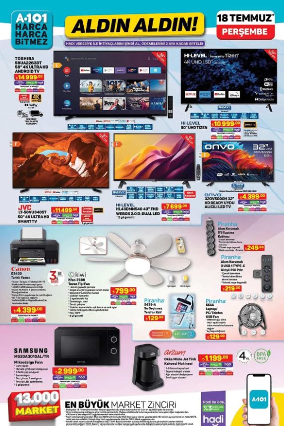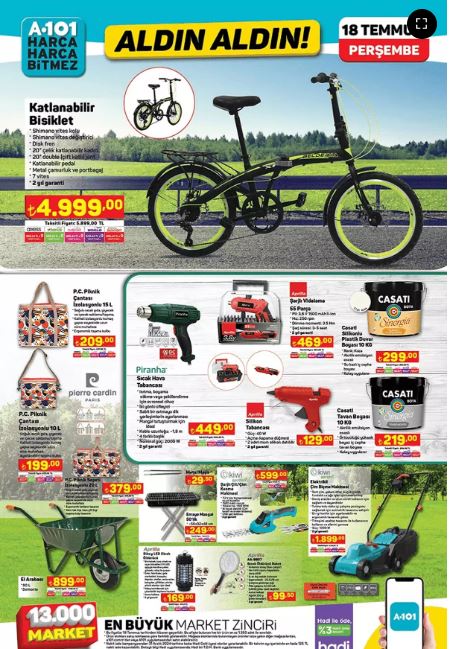 Katalog incelendiğinde, A101'in yeni haftada sunacağı ürün gamının oldukça geniş ve çeşitli olduğu görülüyor. Müşterilerin çok yönlü ihtiyaçlarına cevap verecek bu ürünler,101'in Aldın Aldın konsepti kapsamında cazip fiyatlarla sunulacak. A101, her zaman gibi kaliteli ve kullanışlı ürünleri müşterilerinin beğenisine sunuyor. Ev tekstilindenfak ürünlerine, elektronikten kişiselım ürünlerine kadar geniş bir yelpazede sunulan ürünler, A101 alışveriş deneyimini daha da zenginleştiriyor.