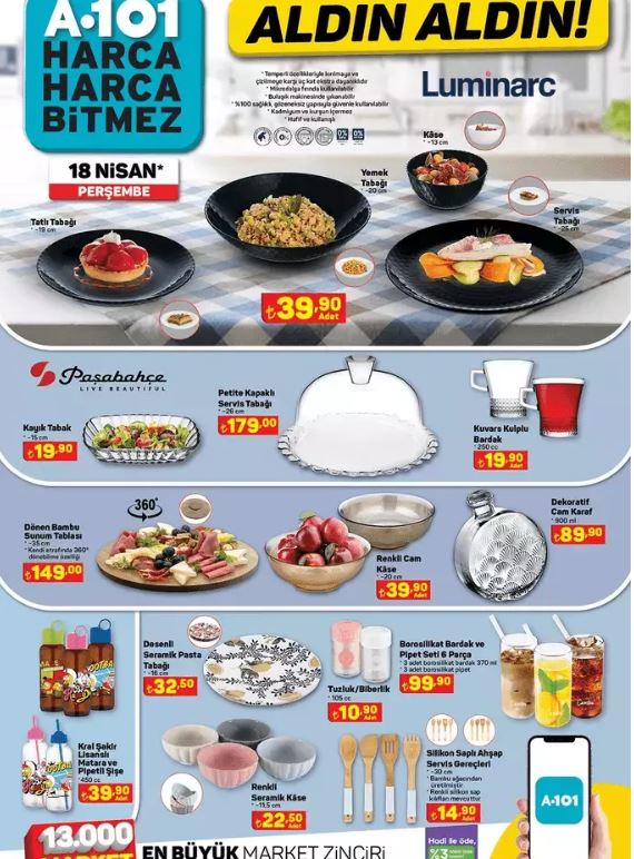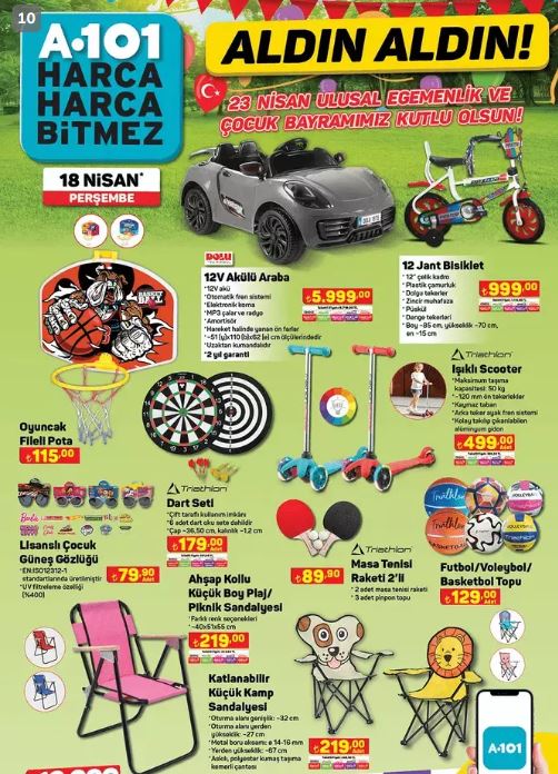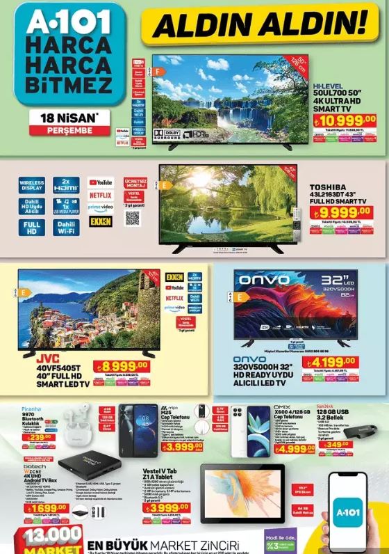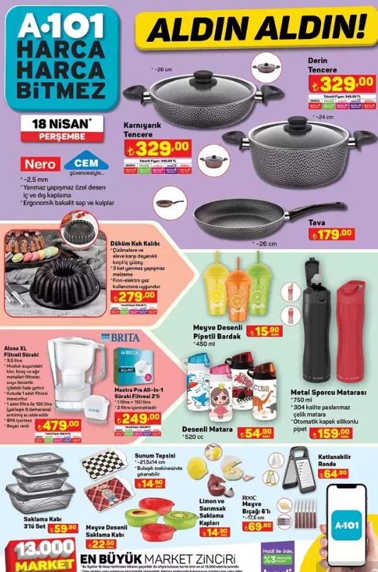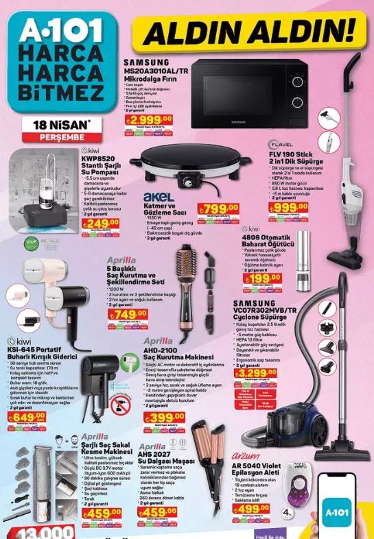 18 Nisan 2024 Perşembe haftasına ait A 101 kataloğu açıklandı ve heyecan verici ürünlerle dolu.Her perşembe özel indirim kataloğunu yayınlayan ve ev aletlerinden giyime, gıdadan diğer temel ihtiyaçlara kadar geniş bir yelpazede ürünleri uygun fiyatlarla sunan A101'de bu hafta Apec Maxi Scooter, Bluetooth Kulaklık, AkülüAraba, Toshiba Smart TV, Samsung Elektrikli Süpürge ve Katmer ve Gözleme Tabağı gibi etkileyici ürünler yer alıyor.