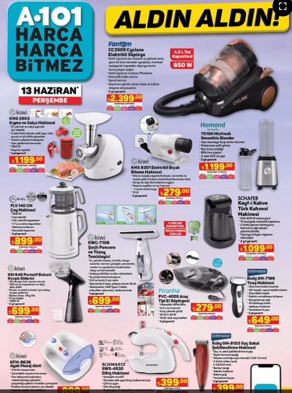 A101'e Kıyma ve Salça Makinesi, Akıllı Saat, Akülü Araba, Dikiş Makinesi, Motosiklet Geliyor! 13 Haziran 2024 A101 Aldın Aldın Kataloğu
