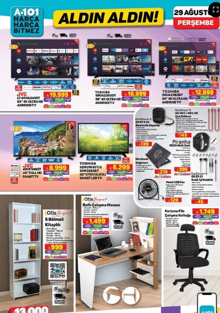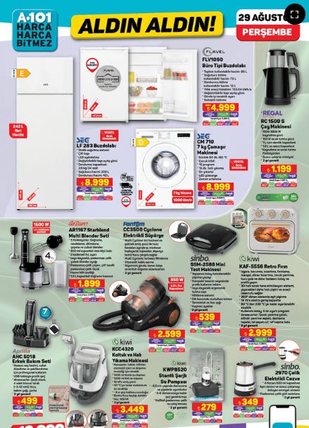 A101, 29 Ağustos - 5 Eylül 2024 tarihleri arasında gerçekleşecek yeni kampanyasıyla, evlerinize teknoloji ve konfor getiriyor. Bu haftaki Aldın Aldın Kataloğu'nda, 65" 4K Ultra HD Android TV'den mutfak ekipmanlarına, halı yıkama makinesinden mobilya ve banyo ürünlerine kadar geniş bir yelpazede cazip indirimler sizi bekliyor.