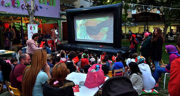 Eskişehir'de 23 Nisan Ulusal Egemenlik ve Çocuk Bayramı dolaysıyla çocuklar için açık havada çizgi film gösterimi yapıldı.