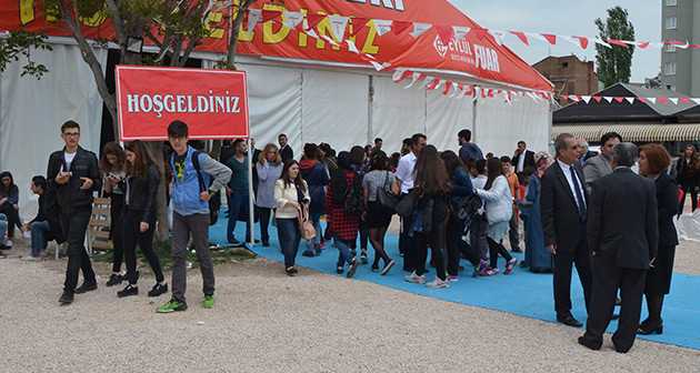 Eskişehir'de bulunan Espark AVM yanında açılan kitap fuarının kurdelesini, protokol üyeleri ile beraber çocuklar kesti.