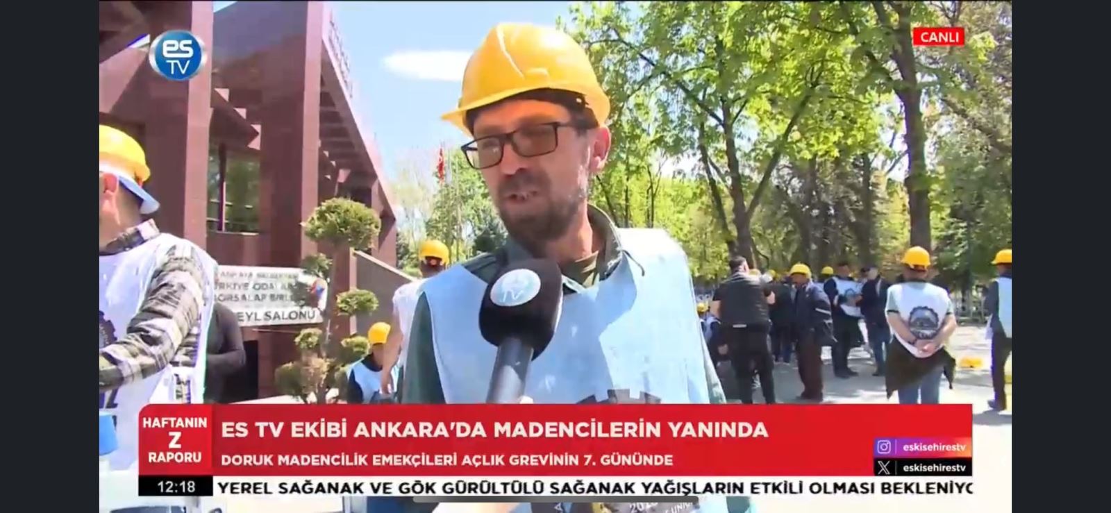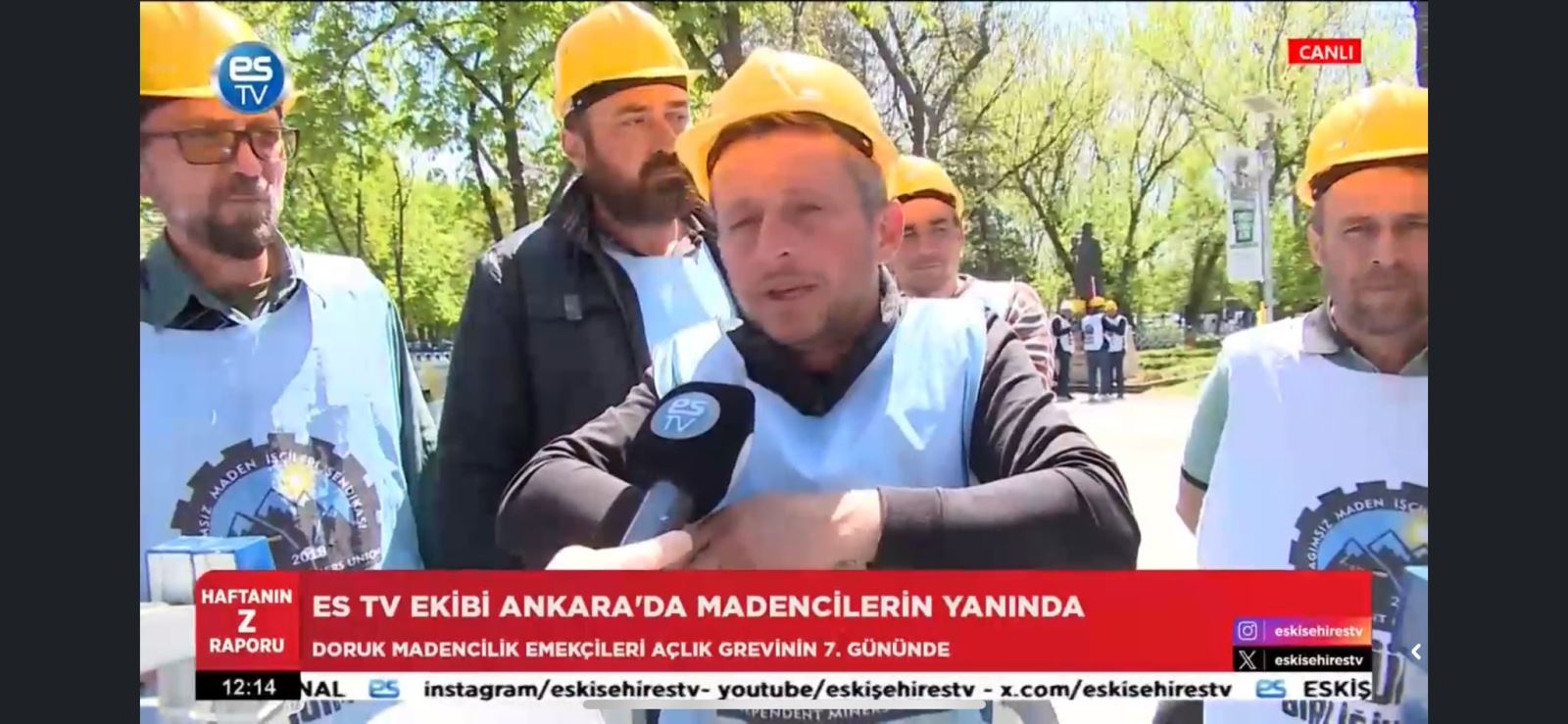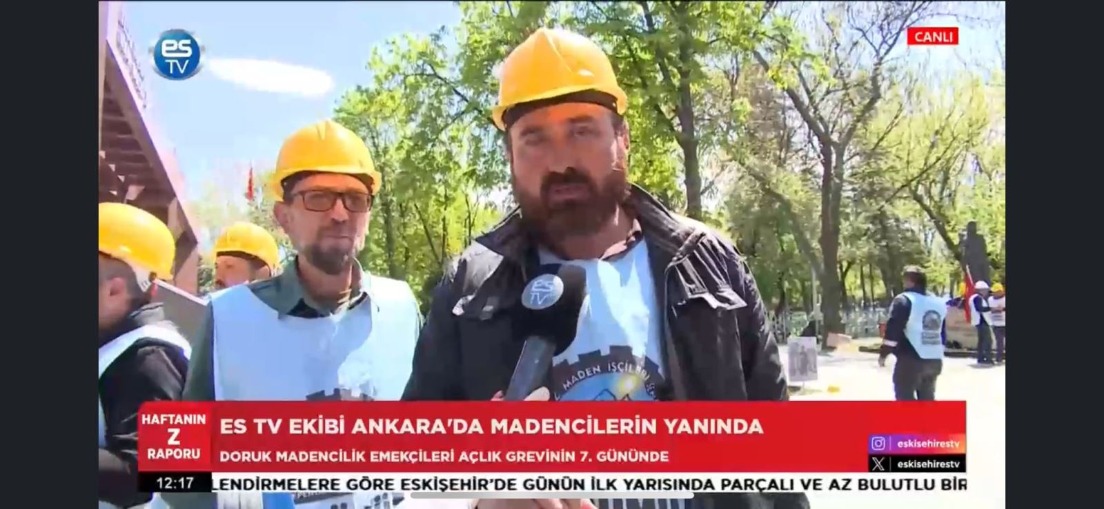 Yıldızlar SSS Holding’e bağlı Doruk Madencilik işçileri, Eskişehir’den başlattıkları hak mücadelesini Ankara Kurtuluş Parkı’nda sürdürüyor. Açlık grevlerinin 8’inci gününe giren işçiler, ödenmeyen maaşlar, tazminatlar ve kaybettikleri haklar için bugün saat 12.00’de Enerji ve Tabii Kaynaklar Bakanlığı’na yürüyecek.