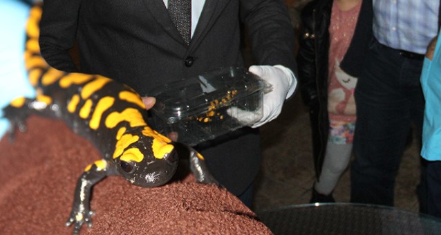 Adana'da nesli tükenmekte olan sarı benekli semender bulan avcı, sürüngeni bir hafta evinde besledikten sonra Doğa Koruma ve Milli Parklar Müdürlüğüne teslim etti.