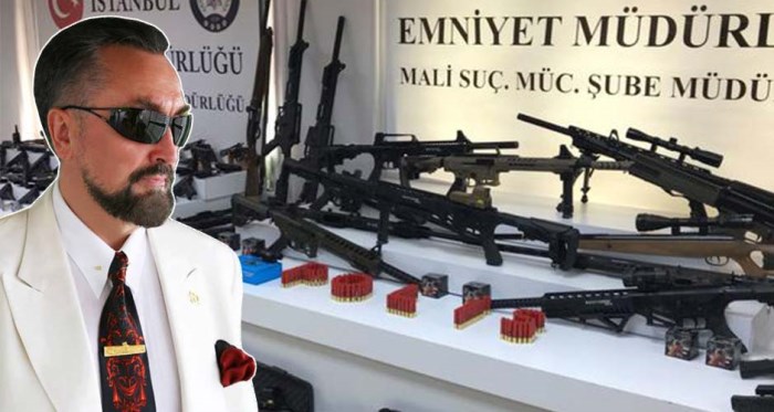 Adnan Oktar ve grubuna yönelik operasyonlarda basılan evlerde ele geçirilen silah ve mühimmat Emniyet Müdürlüğü’nde sergilendi.