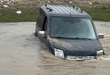 Videoyu Aç Afyon'da aracıyla çayı geçmeye çalışırken suda mahsur kaldı