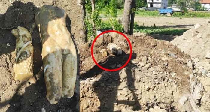 Olay, Sinanpaşa ilçesinde meydana geldi. Edinilen bilgilere göre, bölgede kanalizasyon hattı yenileme çalışması yapan belediye ekipleri iş makinesi ile kazı yaptıkları esnada kepçe sert bir objeye çarptı. Çalışmaları durduran işçiler el yordamıyla objeye baktıklarında cismin heykel olduğunu fark etti. Bunun üzerine işçiler jandarmayı arayarak durumu bildirdi. İhbar üzerine bölgeye gelen jandarma güvenlik önlemi aldıktan sonra İl Kültür ve Turizm Müdürlüğü ile Müze Müdürlüğü yetkililerine bilgi verdi. Ardından bölgeye 5 kişilik uzman bir ekip geldi. Objeleri koruma altına alan ekipler ardından eserleri Afyonkarahisar Müzesi’ne götürdüler.
