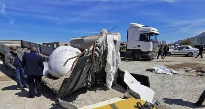 Afyonkarahisar’ın Dinar ilçesinde iki tırın kafa kafaya çarpışması sonucu meydana gelen trafik kazasında şoförler yaşamını yitirdi. Kazada tırların sürücü kabinleri hurdaya dönerken, araçlardan birinin dorsesindeki pancar küspesi ile silobastaki tonlarca çimento ise yola savruldu.