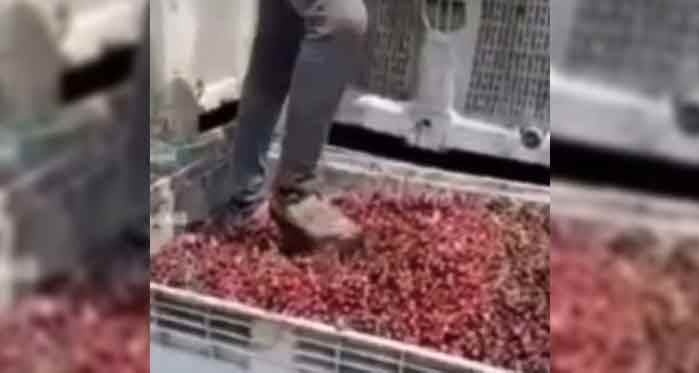 Afyonkarahisar’ın Sultandağı ilçesindeki meyve suyu tesisi ürün alım merkezinde ortaya çıkan mide bulandırıcı görüntüler sonrası Tarım ve Orman Müdürlüğü ekipleri harekete geçti. Görüntülerde işçilerin toplanan vişnelerin üzerinde ayakkabıları ile gezdikleri ve bunu da gülümseyerek yapmaları ‘pes’ dedirtti.