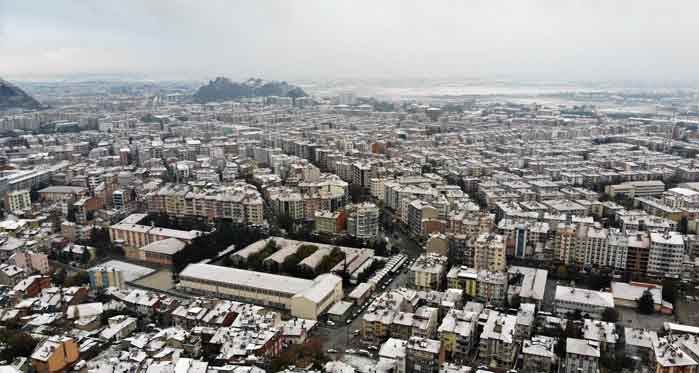 Kentte yağan kar yağışı sonrası ortaya çıkan manzarayı İhlas Haber Ajansı (İHA) kameramanları havadan drone ile görüntüledi.