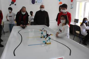 Afyonkarahisar’Da İl Milli Eğitim Müdürlüğü Tarafından Kurulan ‘Kendin Yap Atölyesi’Nin Açılışı Gerçekleşti. Atölyede Robotik Kodlamadan Sanat Atölyesine Kadar Birçok Alanda Öğrencilere Eğitimler Veriliyor. (Erik Dalı Oynayan Robotlar)