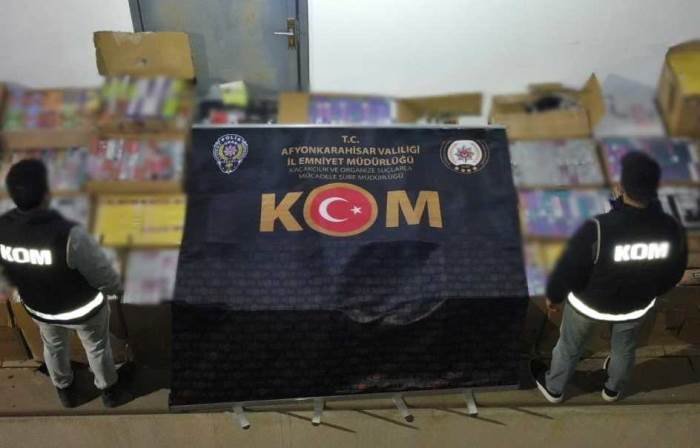 Afyonkarahisar’da polis ekipleri, piyasa değeri yaklaşık 27 milyon TL olan gümrük kaçağı sigara, puro ve elektronik sigara ele geçirdi.