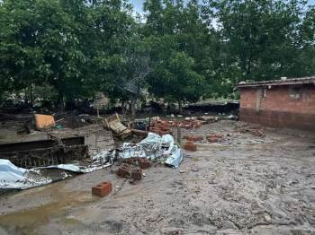 Afyonkarahisar’da dün akşam saatlerinde etkili olan sağanak yağmur nedeniyle birçok bölgede sel baskınları meydana geldi. İscehisar ilçesi Çalışlar Köyü’nde saat 18.00 sıralarında etkili olan sağanak yağmur yerini doluya bıraktı. Yaklaşık 3 saat boyunca devam eden sağanak yağmur ve dolu nedeniyle dereler taştı. Köy adeta sele teslim oldu. Sel nedeniyle birçok küçükbaş hayvan telef olurken, Halil İbrahim Gün isimli bir Çoban’ın ağılının duvarı sel nedeniyle yıkıldı. Yıkılan duvarın altında kalan çobanın ayağı kırılarak yaralanırken 50 koyunu ise sel sularına kapılarak telef oldu. Sel sularına kapıldığı düşünülen Halil İbrahim Gün isimli çoban 112 ekiplerinin bölgeye sevk edilmesiyle yıkılan ağıl duvarının altında bulunarak ambulansla hastaneye kaldırıldı.