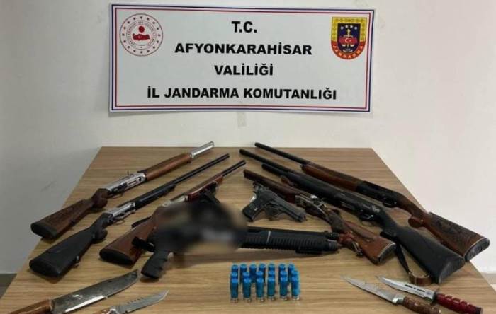 Edinilen bilgilere göre, Afyonkarahisar İl Jandarma Komutanlığı ekipleri tarafından düğün ve eğlencelerde havaya ateş açarak genel güvenliği kasten tehlikeye sokan şahıslara yönelik operasyon yapıldı. Operasyonda yapılan aramada 2 adet kuru sıkı tabanca, 5 adet ruhsatsız av tüfeği, 2 adet ruhsatlı av tüfeği, 48 adet 12 kalibre çapında av tüfeği fişeği ve 3 Adet 6136 sayılı kanun çerçevesinde olduğu değerlendirilen bıçak ele geçirildi. Operasyon sonrası İ.K., İ.D., R.T, O.T., M.K., A.D ve M.G. isimli şahıslar gözaltına alındı.