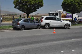 Afyonkarahisar’Da Yangın Çıkan Bölgede Hafriyat Döken Kamyonun Dorsesi Yüksek Gerilim Hatlarındaki Elektrik Tellerine Temas Edip Kablolardan Birin Koparınca Yola Sarkan Kablolara Çarpmak İstemeyen İki Otomobil Bir Birine Girdi