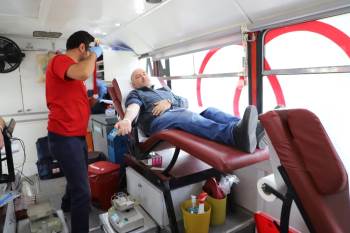 Açıklamaların ardından partililer gezici kan bağış istasyonuna girerek sırayla kan verdi.